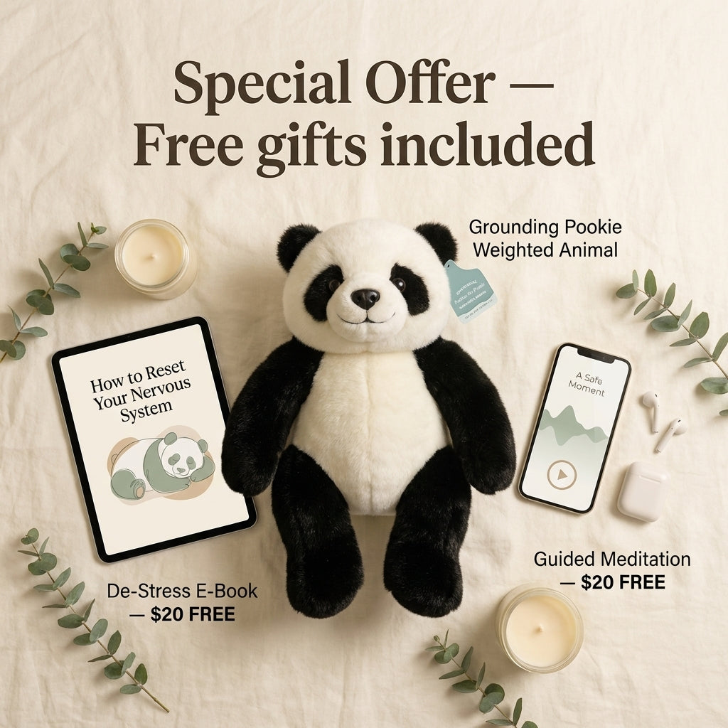 Our Grounding Pookie Panda offers a gentle, comforting embrace that mimics a hug, helping to ease stress and anxiety. Perfect for unwinding after a busy day, this plush companion provides a sense of calm and relaxation.